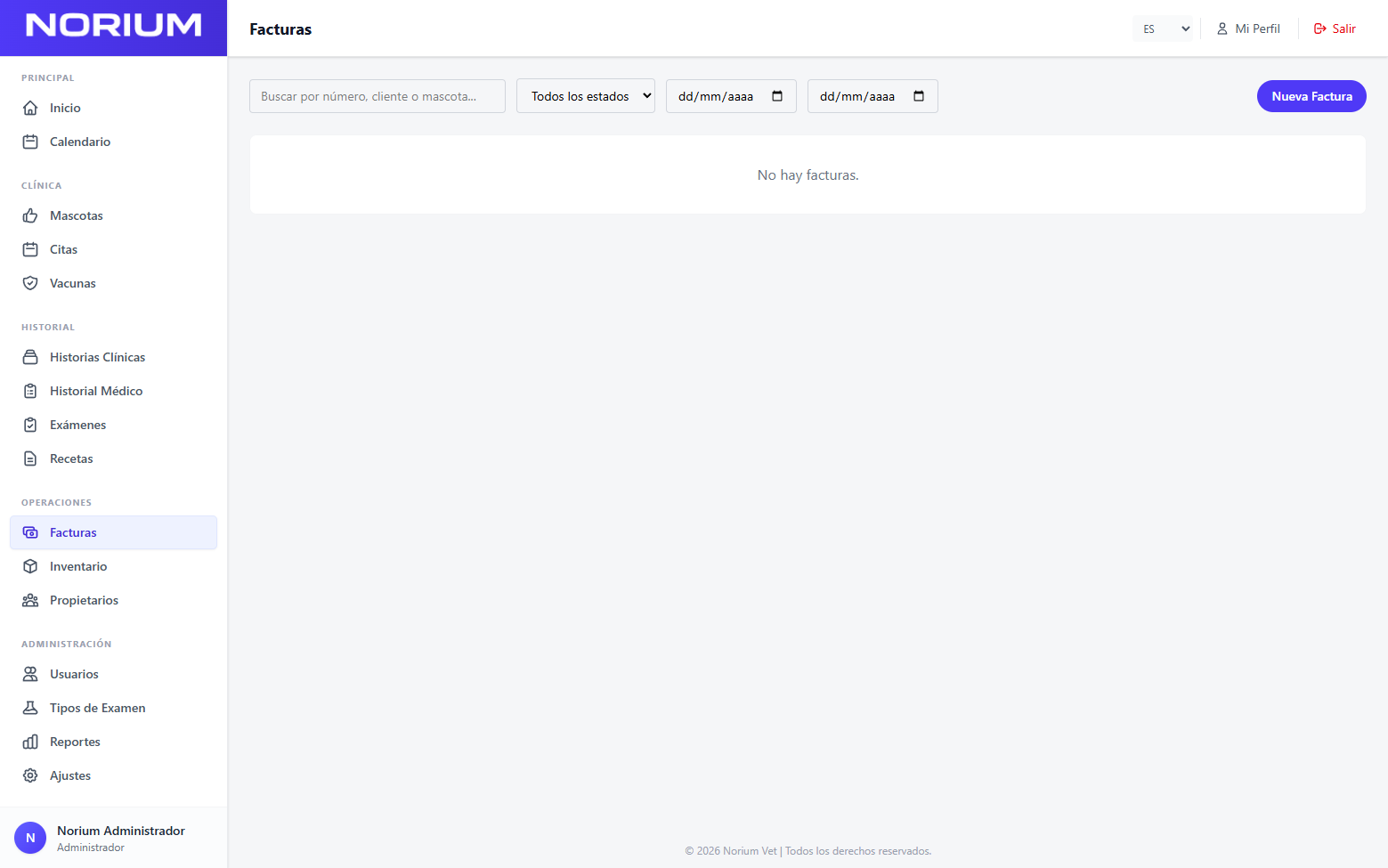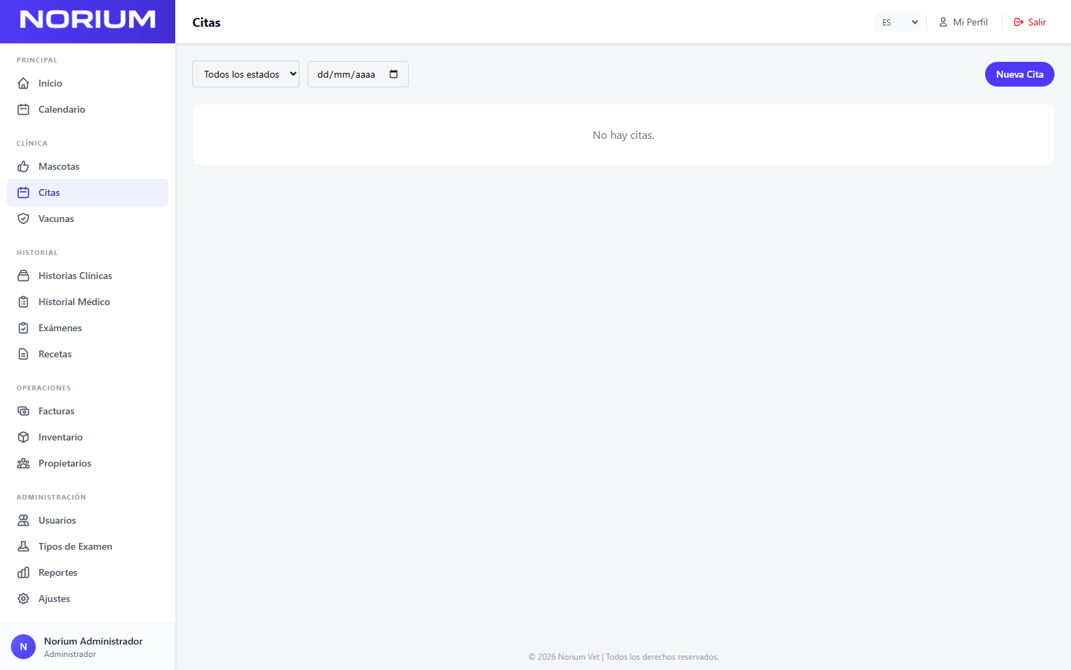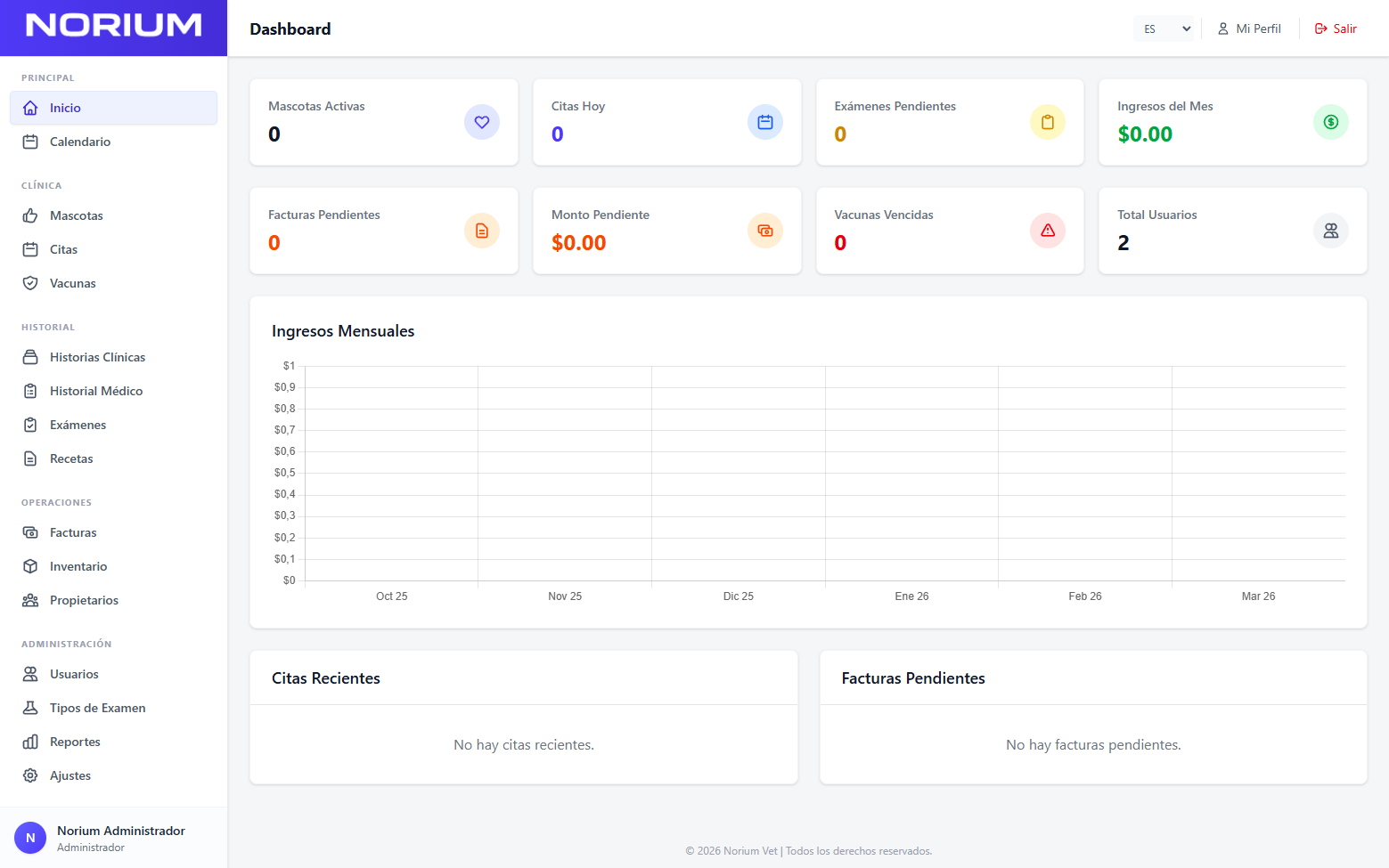 Norium Vet te ayuda a llevar de forma más organizada mascotas, citas, historias clínicas, historial médico, vacunas, recetas, facturas y control interno, todo dentro de un mismo sistema.