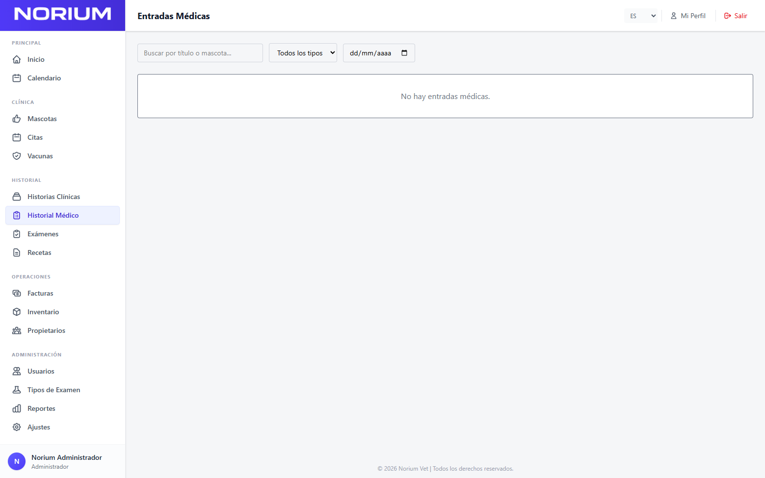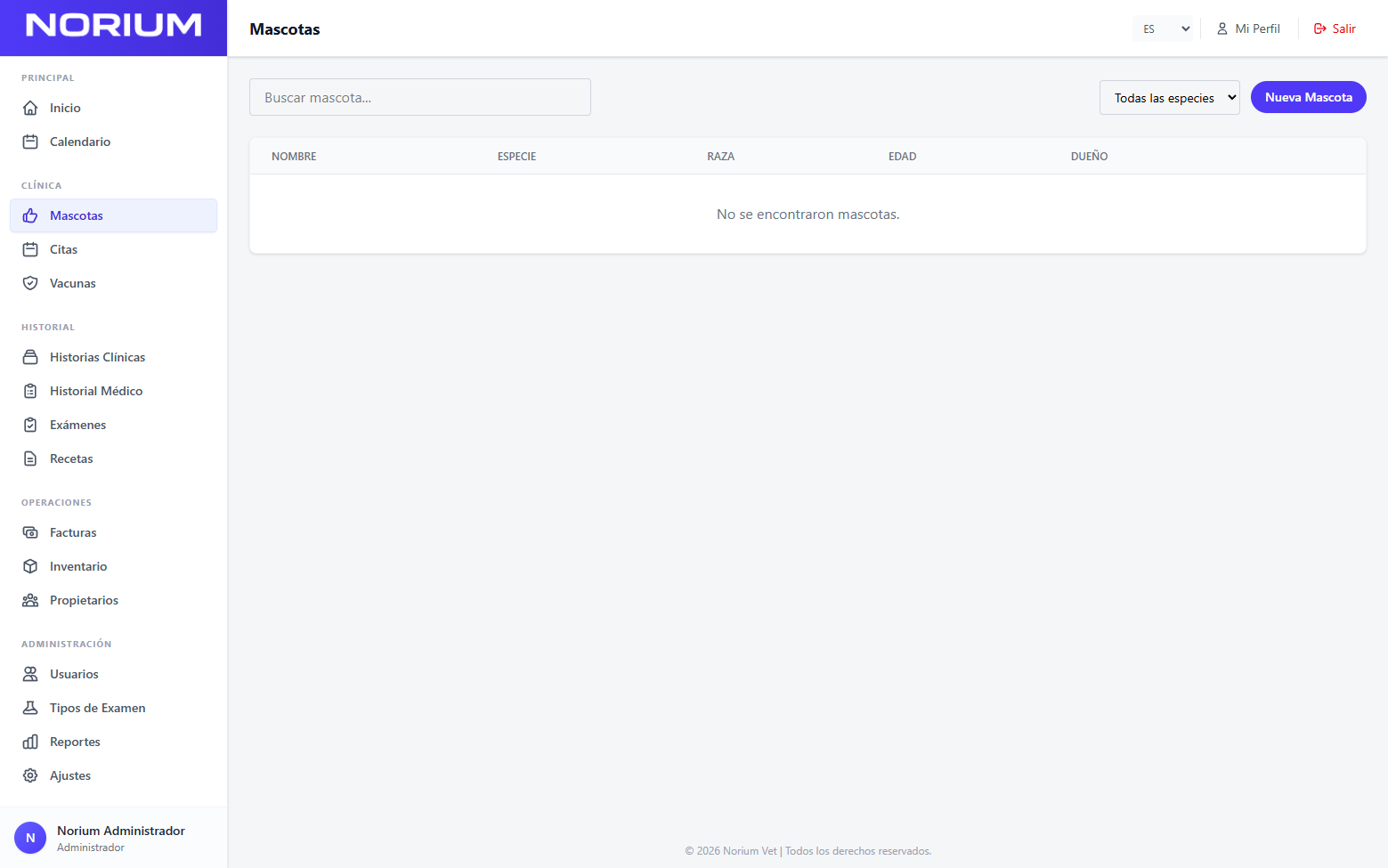 Norium Vet está pensado para acompañar el trabajo diario de clínicas veterinarias y profesionales veterinarios con una experiencia ordenada, visual y fácil de usar.